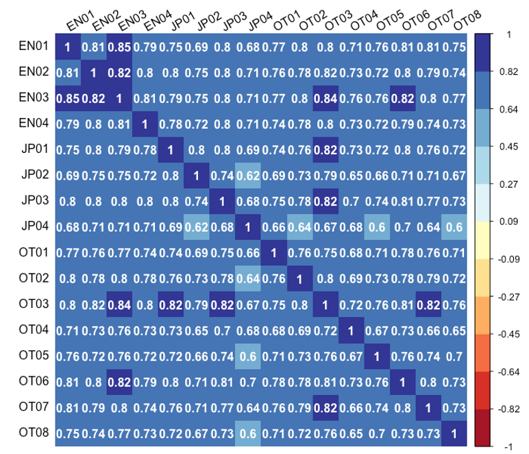 近年の英語習得研究においては特に音声言語において「母語話者らしさ(nativelikeness)」と「伝わりやすさ(intelligibility)」が区別され、それぞれが異なる要素の影響を受けていると言われています。恐らく言語一般的に母語話者らしさに影響を与えるのは当該言語の方言差が生じる部分で、英語の発音では母音の違い(route: 英/ru:t/ 米/raʊt/)、日本語の発音ではピッチアクセントの違い (牡蠣 vs 柿)) がこれに相当します。一方で国際コミュニケーションのためには 「伝わりやすさ」 の向上が重要であることは学界の共通認識であるものの、その要因となる特性については更なる研究が必要な状況です。本研究では様々な母語の話者による日本人英語音声の評価とその音声特性との相関を分析しました。